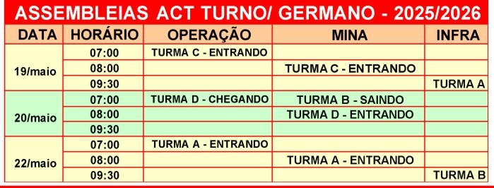 Lembramos a importância da participação de todos os trabalhadores envolvidos no revezamento de turno e jornadas especiais, para que tenhamos uma decisão coletiva consciente de todos os companheiros.